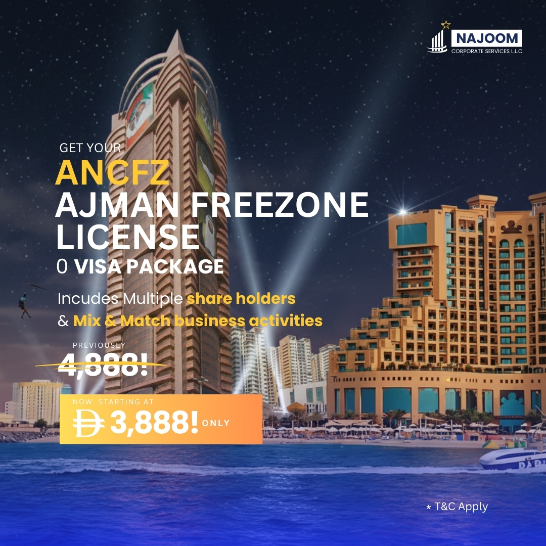 Get Your Ajman Freezone (ANCFZ) License 0 Visa Package for AED 3888 Only at Najoom Corporate Services